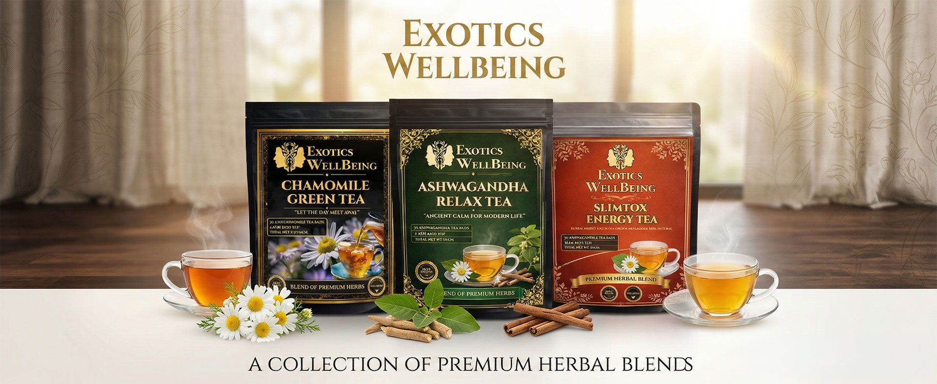 Exotics WellBeing Ashwagandha Relax Tea is a premium herbal blend designed to help you relax, reduce stress, and restore balance. Inspired by traditional Ayurvedic wellness, it combines Ashwagandha with carefully selected herbs for a calming and refreshing experience.
